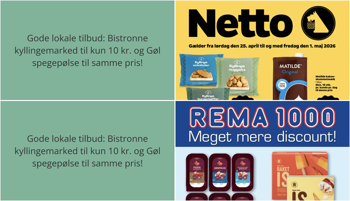 Vi har kigget på denne uges tilbudsaviser for dagligvarebutikker i Brøndby Strand og fundet nogle fantastiske tilbud. Her er et udpluk af de bedste tilbud fra Netto og Rema 1000.